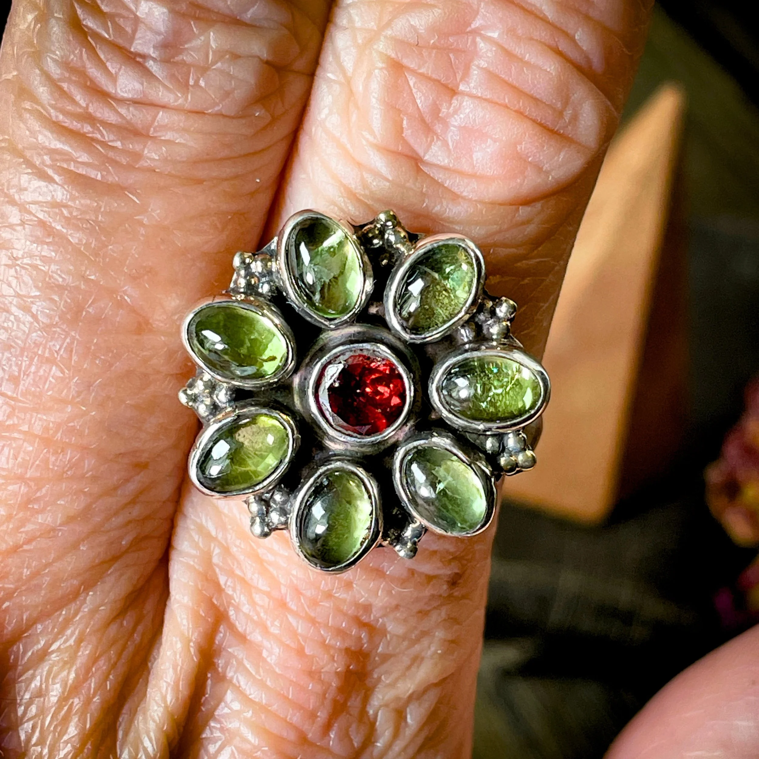 Other rings, crystals, or props in photos? Just ambient sparkle—not part of your haul.