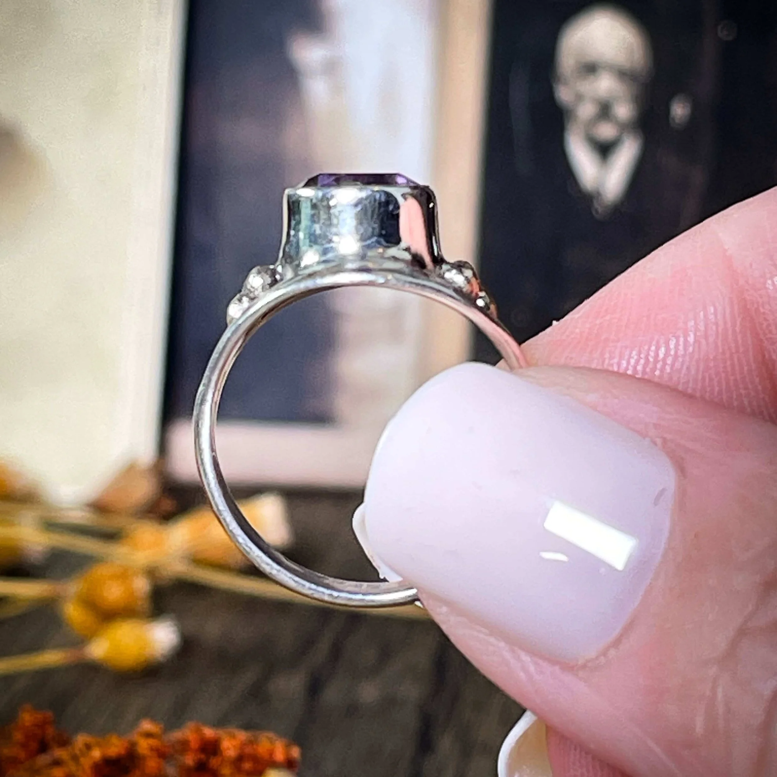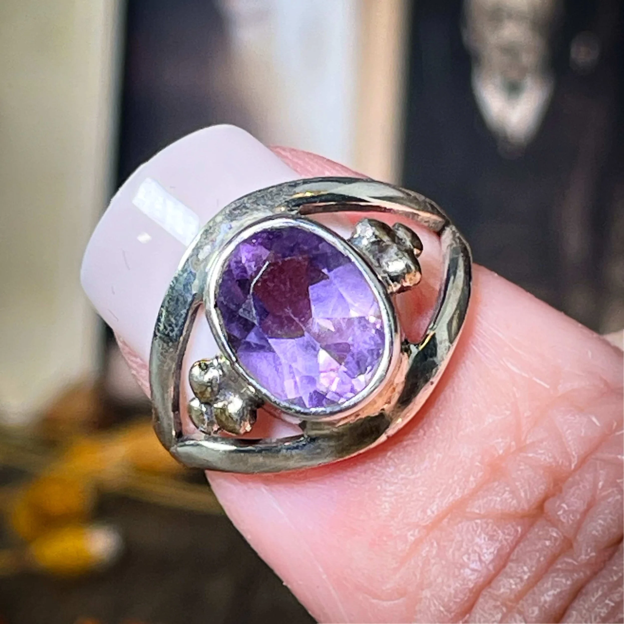 Each amethyst has its own personality—some deeper purple, some with smoky flecks or natural inclusions. This ring isn’t a portal to perfection, but it is a stunning reminder that your power starts within. Use it as your spiritual sidekick—not your only plan.